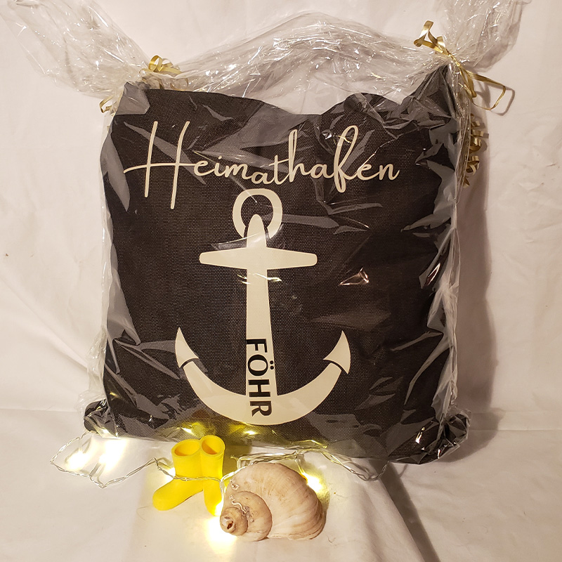 Dieses liebevoll gefertigte Föhrkissen „Heimathafen“ ist ein echtes Lieblingsstück für alle Föhr-Fans. Weich, gemütlich und mit einem maritimen Design, das sofort Urlaubsgefühl ins Zuhause bringt – ein echtes MUSS für jeden, der die Insel im Herzen trägt.