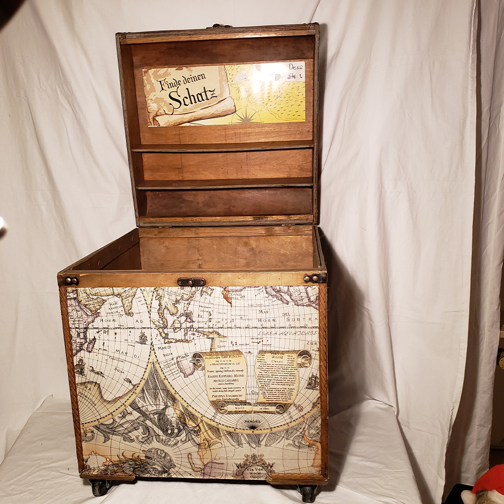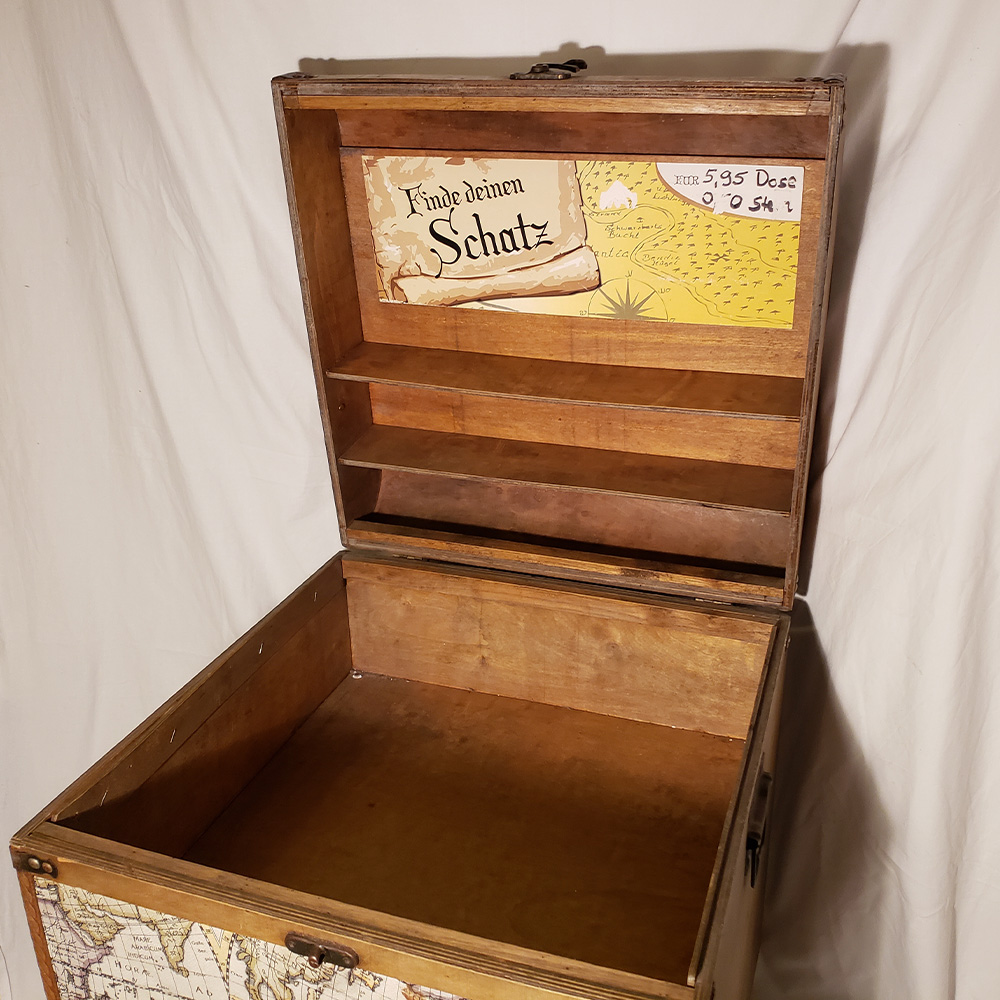Aus ihrem Fundus an Schaufensterdekorationen hat das Team uns diese wunderschöne Schatzkiste zur Verfügung gestellt. Ein besonderes Stück, das Geschichten erzählt und sich perfekt als Dekoration oder Aufbewahrung eignet.