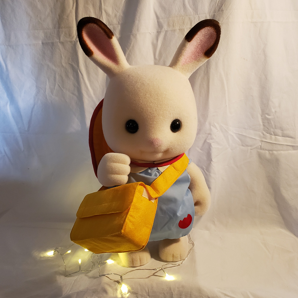 Dieses 53 cm große Häschen aus der Sylvanian Familie war einst eine liebevoll gestaltete Schaufenster-Dekofigur bei Schaukelpferd und sucht nun ein neues Zuhause.